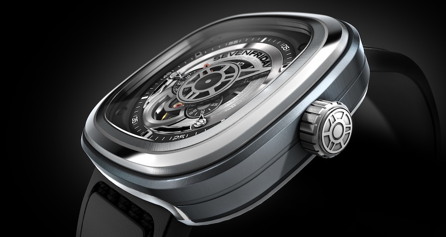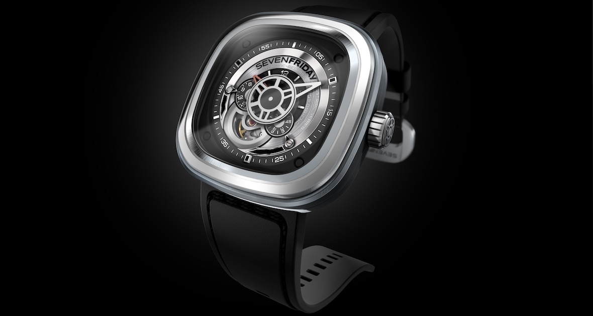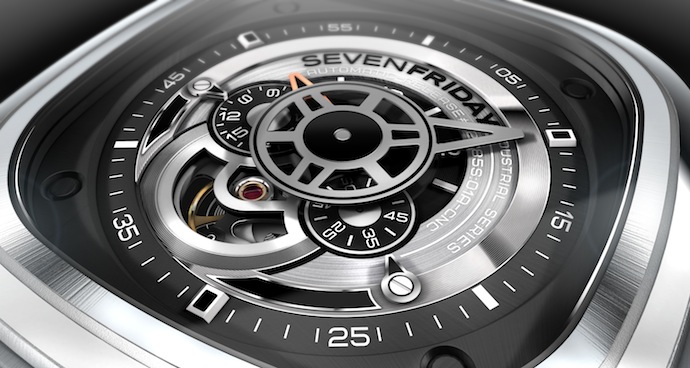 The dial comprises multiple layers creating a three dimensional part skeletonized complication. The core of the design centers around three rotating discs displaying hours, minutes, seconds & a GMT function. The Swiss design group Studio Divine is largely responsible for creating this. In my opinion this gives the illusion of a much more expensive watch. Seven Friday offer three models in the range the P1, P2 & P3. My preference is the P1 because I love the stainless steel finishing. In my opinion it is most complimentary to the unique design.