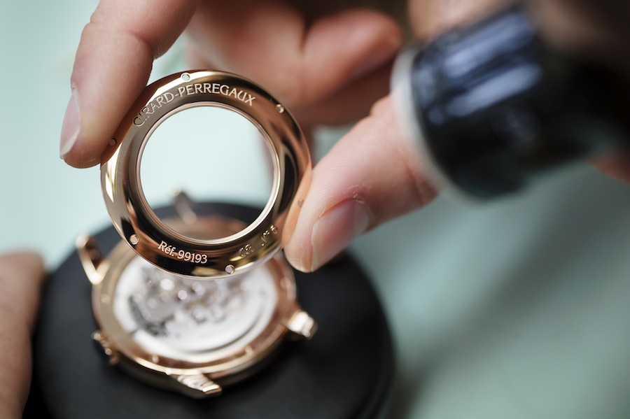 The engine that powers this sensational timepiece is the phenomenal Calibre GP09600. This automatic movement comprises 31 jewels and oscillates at a frequency of 21,600 vibrations per hour (3 Hz). Each of the mechanisms 256 components has been painstakingly assembled and decorated by hand at the company’s workshops in Switzerland. Amazingly the tourbillon is composed of 80 parts weighing a mere 0.3 grams. The Three Bridge Tourbillon features hours, minutes and small seconds on the tourbillon. It also has a power reserve of 48 hours and is water resistant to a depth of thirty metres.