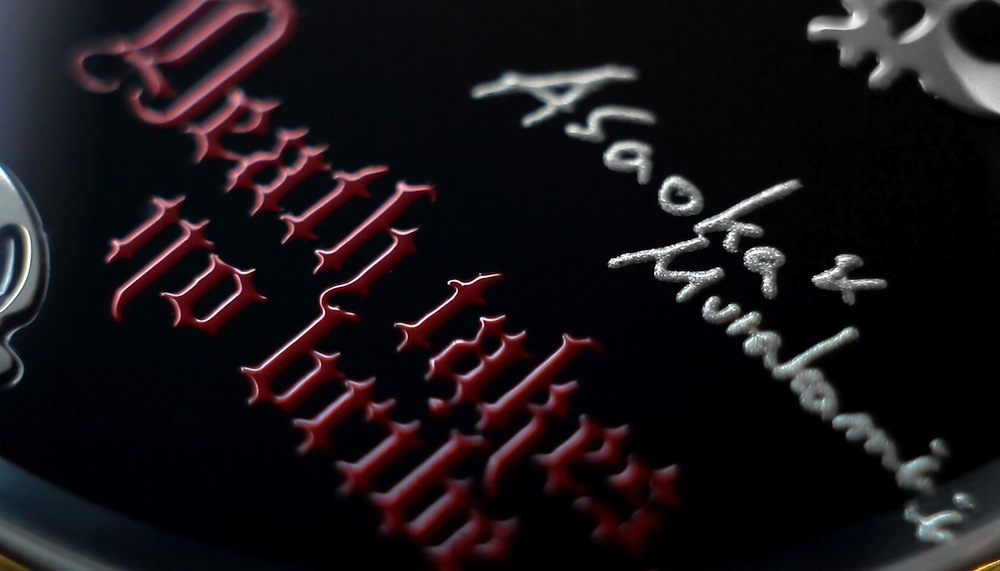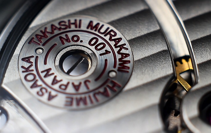 Hajime Asaoka originates from the city of Yokahama and later gained an art degree from the university of Tokyo in 1990. Initially he began his career as an industrial designer and only made the transition into watch making in 2005. From our recent conversations he informed he is completely self taught and driven by passion. He is also the first independent Japanese watchmaker to construct a timepiece with a tourbillon movement. This year (2013) he debuted at Baselworld and unveiled his fantastic Tsunami to a positive critical reception. Out of all of his watches my personal favourite is the wonderful Death Takes No Bride. This sensational timepiece is a collaboration with prolific contemporary artist Takashi Murakami.
