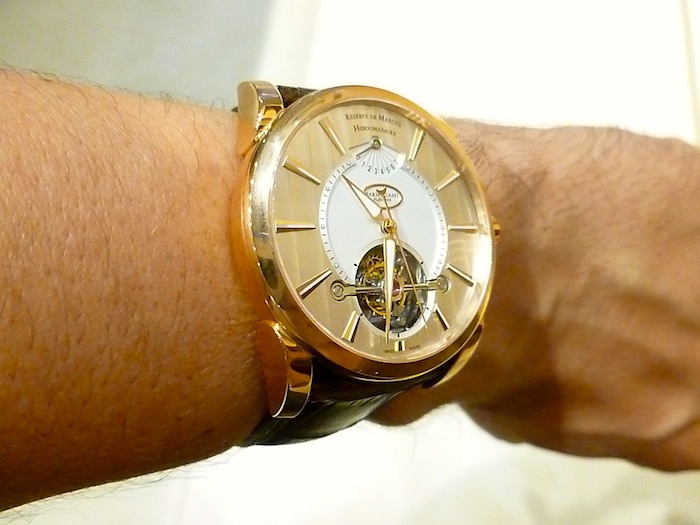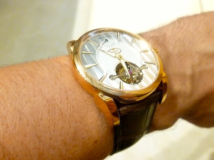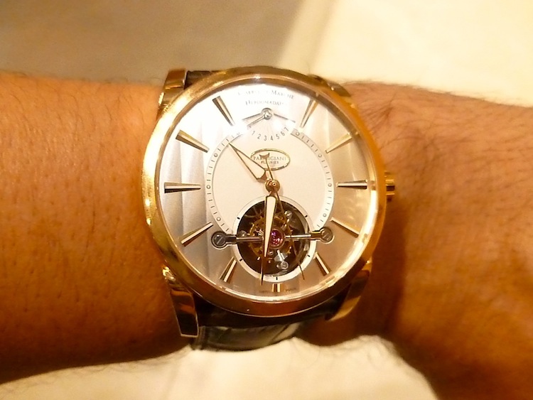 My initial impression of the Tonda Tourbillon was how beautiful and well made the watch appears. With measurements of 42mm x 11.5mm the timepiece has adopted elegant proportions. For the short time I got to wear the watch I found it comfortable and fairly lightweight. Primarily this is down to the sleek design of the case and choice of luxurious 18-carat rose gold used in production. Due to the exclusive nature of this amazing watch I suspect it will attract the attention of serious collectors. I can clearly picture this delectable timepiece looking great with formal attire.