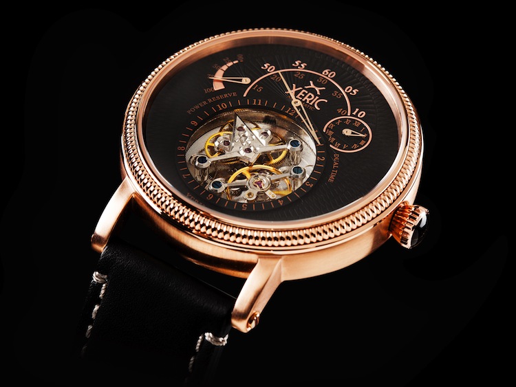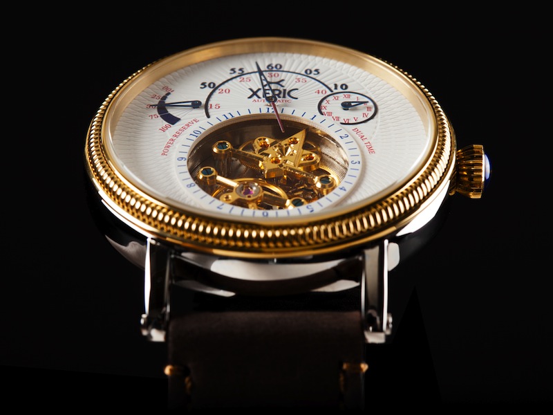 When I first saw the Xeriscope I was quite surprised at its appearance. I was expecting a really contemporary design and this watch has a more classical façade. Nevertheless it is a great looking mechanical watch at a really competitive price point ($400). Out of all the models currently available my personal favourite is the Silver/Black version. The black dial has a Guilloché style engraved pattern, which perfectly contrasts with the bold silver numerals. Other really successful details include the retrograde power reserve indicator and the large aperture (positioned at 6 o’clock) displaying the mechanical movement.