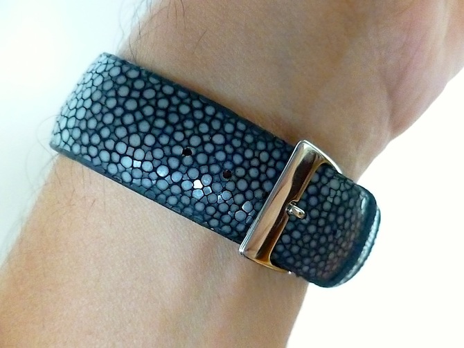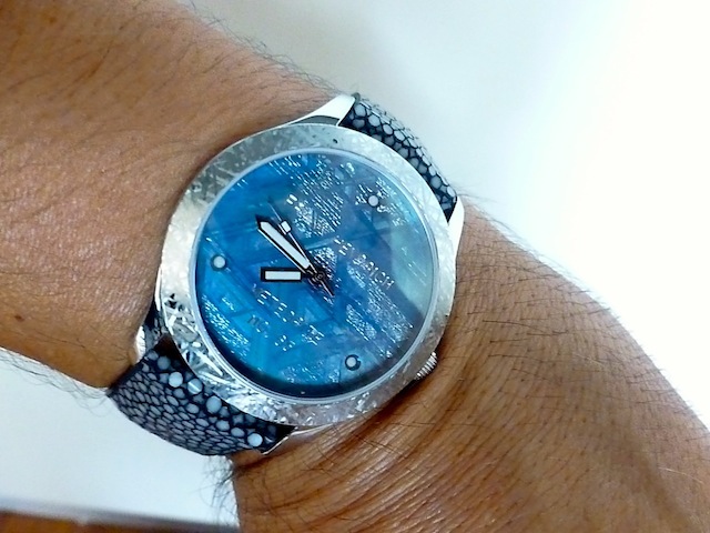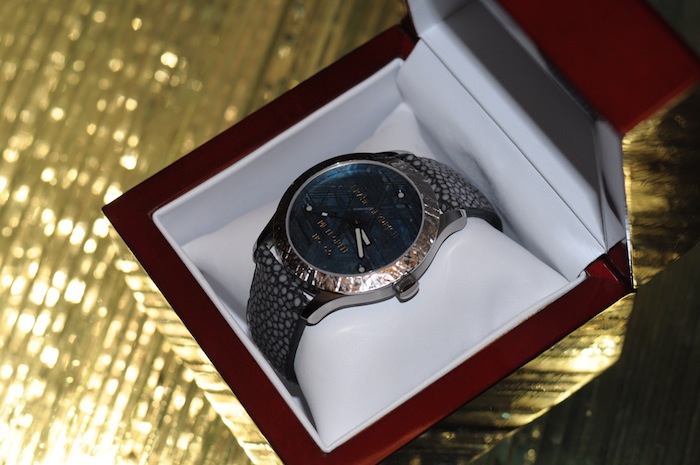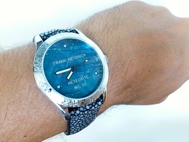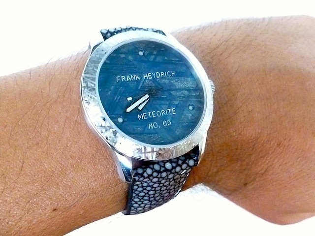 All of Frank Heydrich watches are made to order and therefore can be customised to the buyers exact specifications. The exquisite Mini Meteorite has a real stingray leather strap with matching steel strap. Priced at: $5,000.