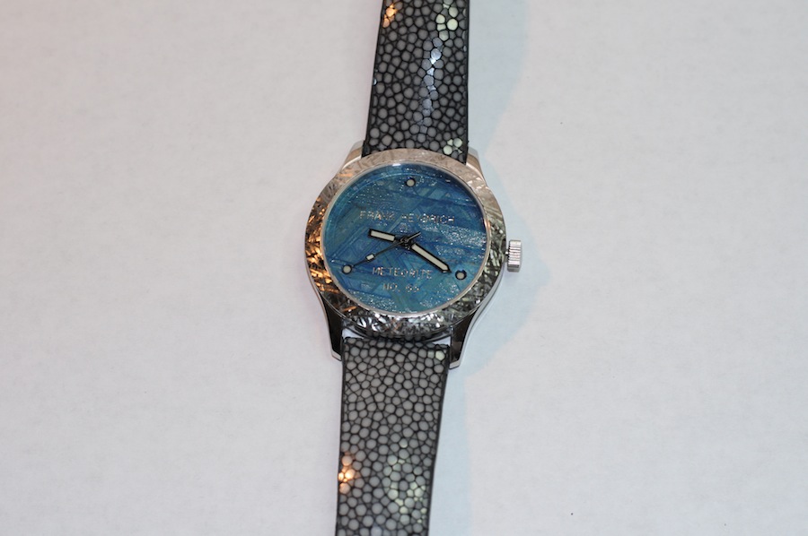 Like most aspiring watchmakers Frank wanted to develop a unique and stimulating timepiece. Instead of using a generic painted brass dial he wanted a material that displayed more interesting characteristics. In recent conversations with Frank he informed me that he was an avid rock collector. On that basis Meteorites seemed like a natural choice for the dial of the watch. Incredibly these specimens can be over 4.5 billion years old and have magnificent patterns (called Widmanstatten lines) that cannot be replicated by synthetic materials.