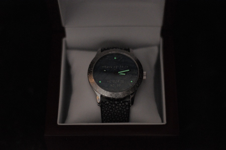 Due to the fact that Frank didn’t disclose any details of the watch before he shipped it, I was really impressed at the stunning craftsmanship of the piece when it arrived. The Mini Meteorite measures 42mm x 10mm, which is smaller than a lot of timepieces currently available on the market. Nevertheless these classical proportions will appeal to a wide range of buyers including the unisex market. My wife normally isn’t that interested in the world of horology but was totally captivated by this watch. We both wore this timepiece and found it to be exceptionally comfortable and lightweight on the wrist. Realistically this watch could be worn for most occasions and definitely on a daily basis.