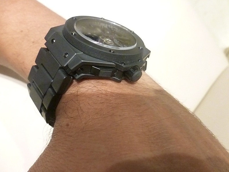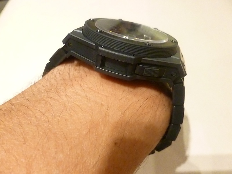 A few weeks ago I got access to a limited edition piece they produced about a year ago. This piece is called the King Power Tourbillon and only 28 were ever made. On that basis I felt it would be a great subject for an in depth review. With a diameter measuring a whopping 48mm (excluding crown and pushers) this is definitely one of the company’s largest watches. Due to the size and price point the timepiece will only appeal to a niche market. Generally I found the timepiece very comfortable to wear and there was no friction from the lugs. Primarily this is down to the ergonomic design and choice of specialist materials in production. The case is constructed from black (Micro-blasted) ceramic with composite resin lugs. This not only makes the watch feel fairly lightweight but also gives it a sleek appearance.