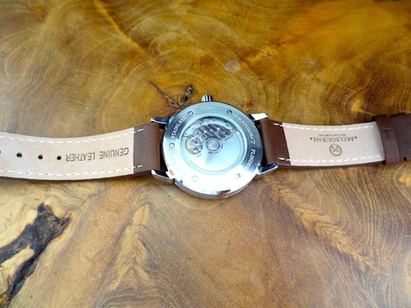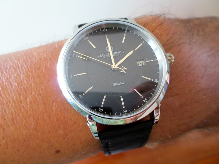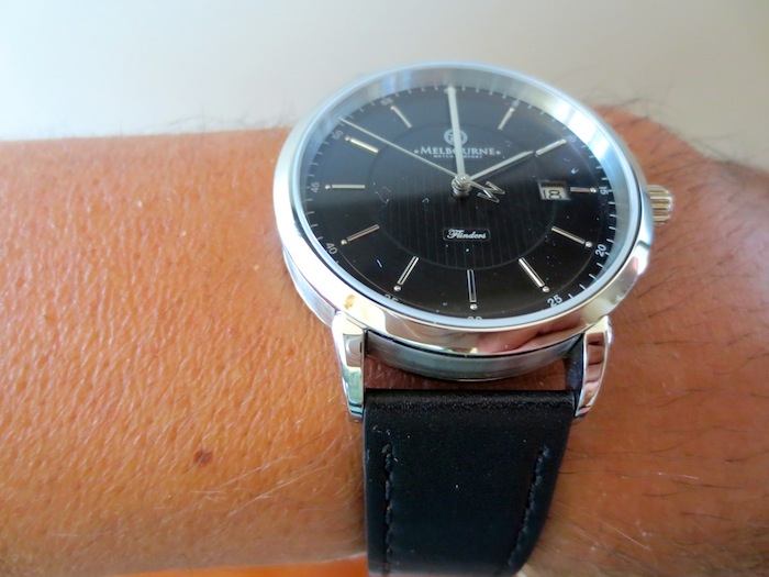 The flinders Automatic has a premium leather strap with matching stainless steel buckle. Priced competitively at: $525AUD (approximately $495US).