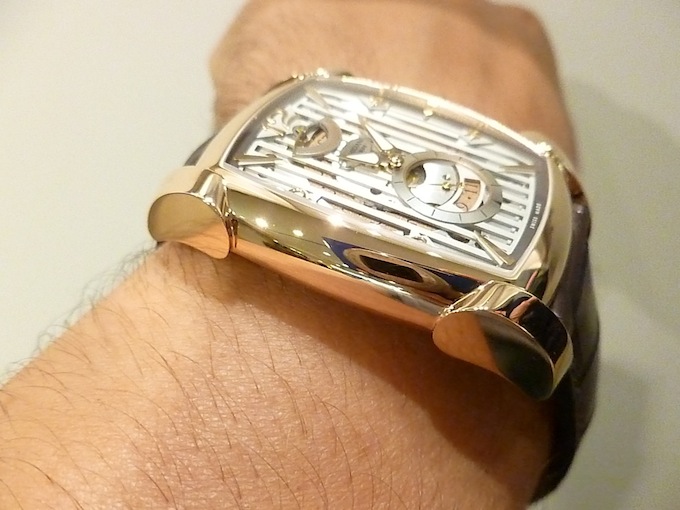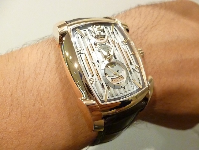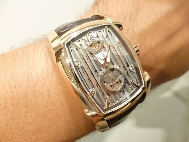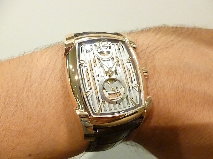 Visually the Kalpa XL Hebdomadaire Rose Gold Havane has a magnificent ‘Art Deco appearance. Generally I try to avoid comparisons but I do prefer the aesthetic of this timepiece to the Tonda Tourbillon. What makes this watch so exceptional is the multi-layered “Grille” dial. I absolutely love the three dimensional façade, which exposes parts of the mechanical movement and date wheel. Other sublime details include raised rose gold plated numerals/indexes and delta shaped hour/minute hands. Overall the design is cohesive and the finishing is superlative.