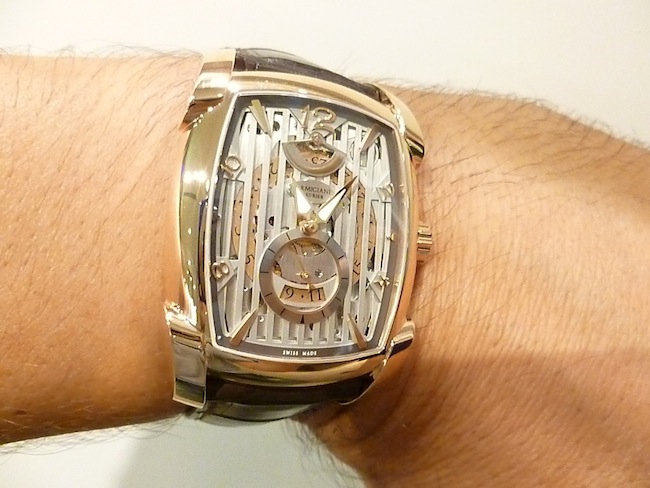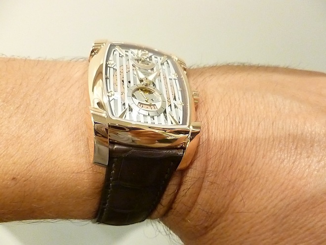 Back in November 2013, I had the great pleasure of reviewing the Tonda Tourbillon. Generally I found the watch very comfortable to wear and was impressed with its elegant appearance. I have also written about the phenomenal Bugatti watch and Tonda Woodstock US in my article entitled ‘Wooden Watches’. Like most watch writers I rely on the good will of retailers who stock these exquisite timepieces. Without their generous support and assistance there is no way I could get access to these models. For that reason I would like to kindly thank the Hour Glass in Sydney for giving me the opportunity to try on Parmigiani Fleurier’s wonderful Kalpa XL Hebdomadaire Rose Gold Havane.