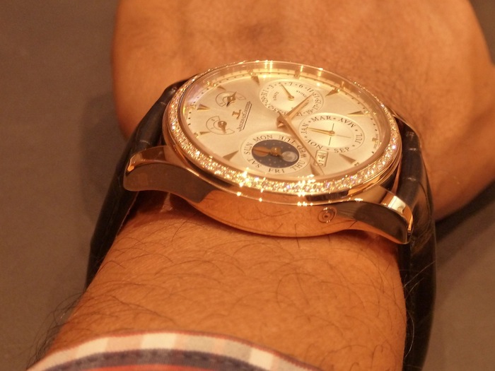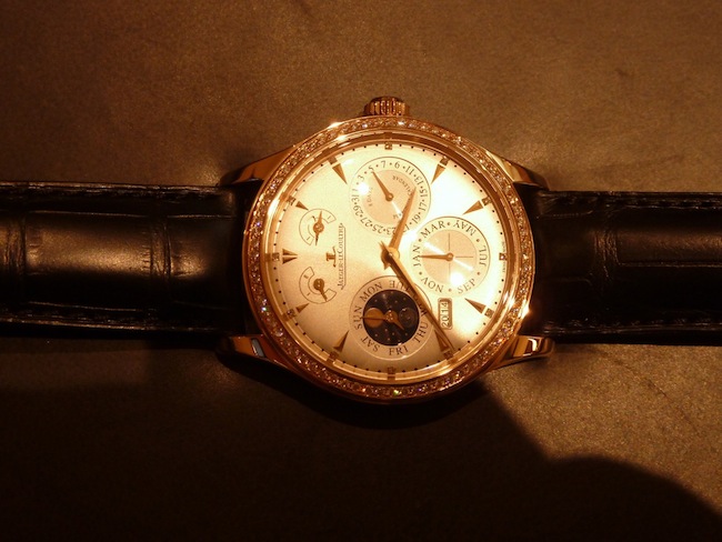 Even though the Master Eight Days Perpetual 40 isn’t one of Jaeger-LeCoultre’s latest models it is still part of their current collection. It is also a beautiful timepiece that I was privileged enough to wear (if only for a very limited time). Dimensionally the watch is smaller than both the Grande Tradition Grande Complication and the Duomètre Sphérotourbillon measuring only 40mm x 12.1mm. These classical proportions should appeal to the serious collector. Generally I found the timepiece sat very comfortably on my wrist and I didn’t experience any friction from the lugs. Primarily this is down to the stylish case design and choice of luxurious 18-karat rose gold. Personally I think this timepiece would look really elegant if worn with a formal dinner suit.