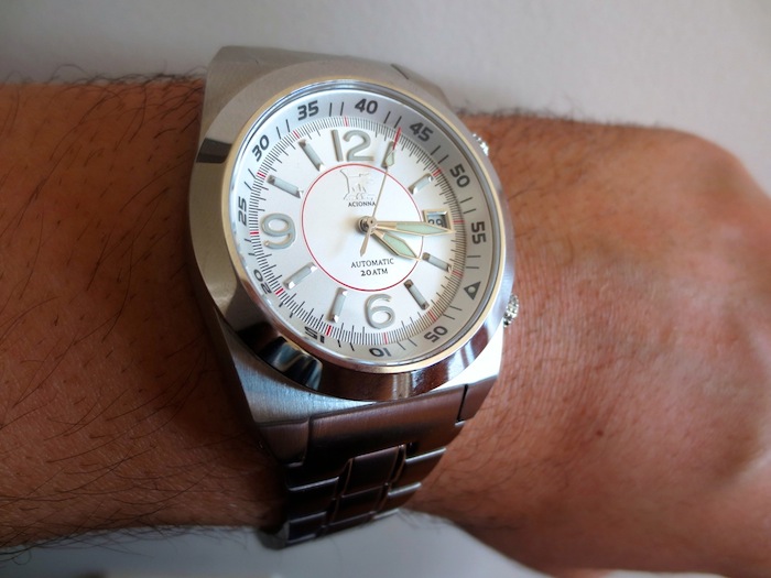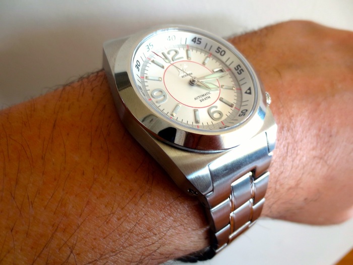 The Acionna as tested has a durable 316L stainless steel bracelet with double-locking clasp. Priced competitively at $668.64.