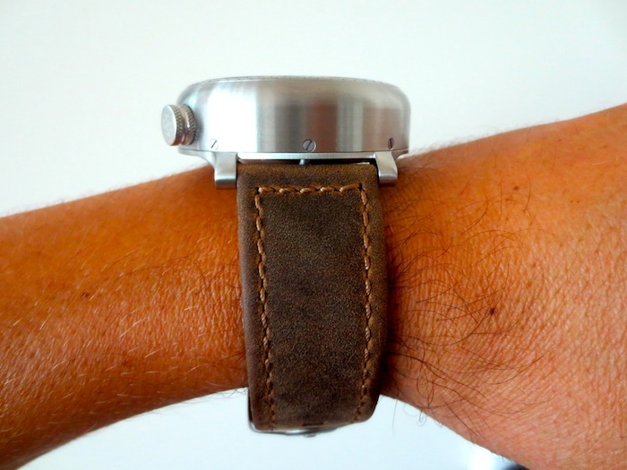 A few weeks ago (just before the Christmas holidays) Mark Daniel very kindly sent me a Sopwith Aviator to test. I have to say that even the glossy images on the company’s website don’t do the watch justice. Dimensionally the 54mm (excluding crown) diameter case of the timepiece won’t appeal to the fainthearted. Nevertheless I feel these proportions are integral to the success of the watches design. Generally I found the watch sat comfortably on my wrist and was actually surprised at how light it felt. I also feel that in this instance 316L stainless steel (rather than titanium) is the correct choice of material.