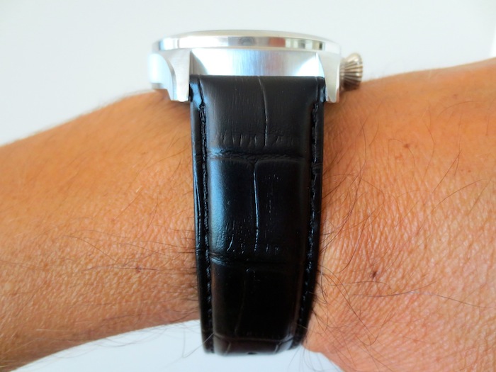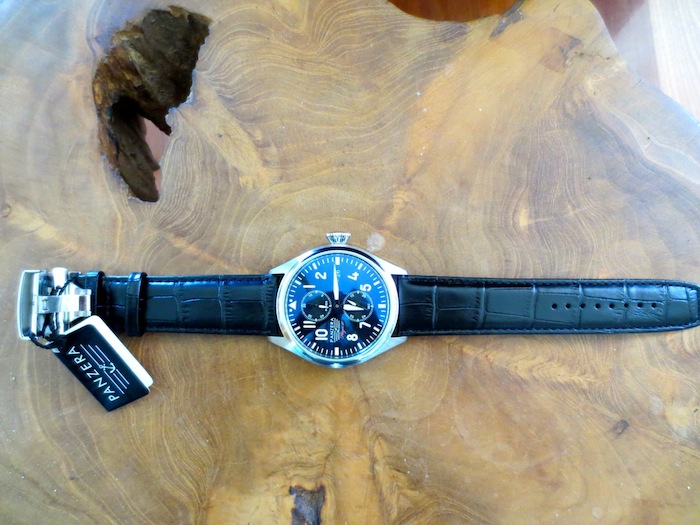 The Flieger F47-01D Arado has a soft black leather strap with matching steel deployment clasp. Priced attractively at $420.