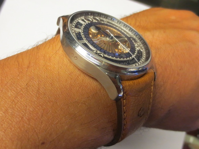 Visually the Babylonian has a really distinctive three-dimensional appearance. What makes this watch so attractive is the intricate multi-layered skeleton dial. The sophisticated design reminds me of some of Itay Noy’s wonderful creations. Interestingly both brands are displayed side by side in Krasnaya Watch Art Gallery, Singapore’s (http://redarmywatches.com) fantastic boutique. Other striking features include open worked bold laser cut numerals, signs of the zodiac, blue steel hour/minute hands and sapphire crystal lens. Overall the composition has been very carefully considered and extremely well executed.