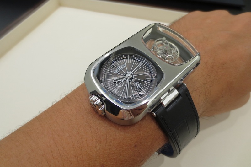 When I first set eyes on the U10 Tourbillon Lumière I was pretty astonished at how striking it actually was. Dimensionally it also packs a pretty impressive punch and measures in at 62.75 mm x 38 mm x 15 mm. Clearly these proportions won’t appeal to everyone and especially not traditionalists. However I do love oversized watches and feel the design warranted something special of this scale. Generally the timepiece felt surprisingly comfortable on the wrist. It also felt pretty lightweight considering it is constructed from steel rather than titanium. Realistically the watch would be reserved for very special occasions although it could be worn for everyday use.