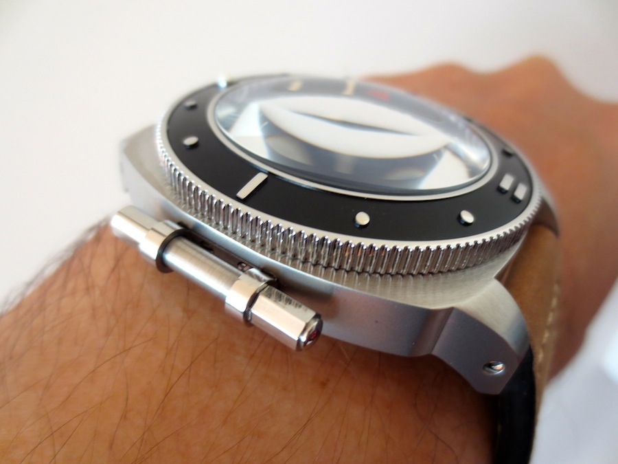 Visually the U-3001 Automatic Power Reserve has a bold and distinctive appearance. I also feel the composition is more original than previous Deutsche Master models. Don’t get me wrong I like the watches from previous collections but feel they are derivative of brands like Panerai and IWC. The U-3001 Automatic Power Reserve shows a sense of maturity, sophistication and has more expensive feel about it. I love the chunky façade with a detachable tool to replace the strap when necessary. This characteristic is quirky and enhances the overall design. Other features include a rotating bezel, blue dial with dual sub counters and domed mineral glass.